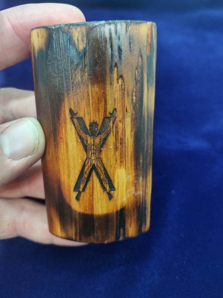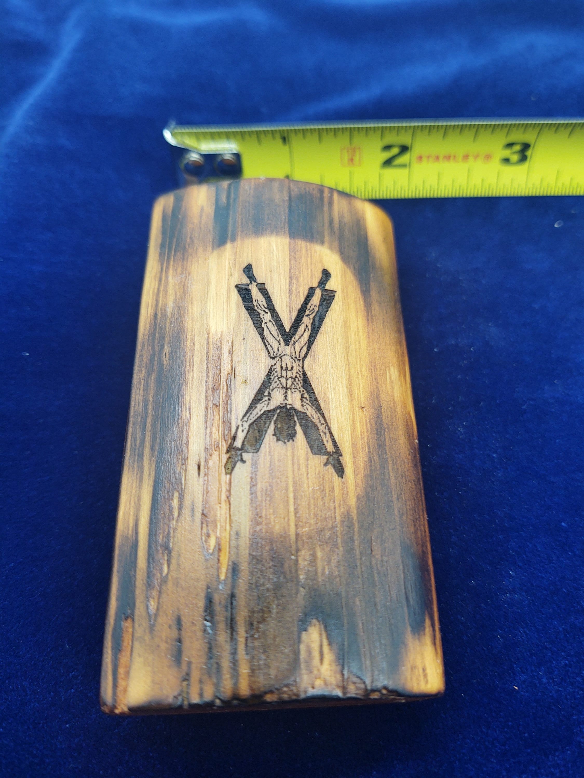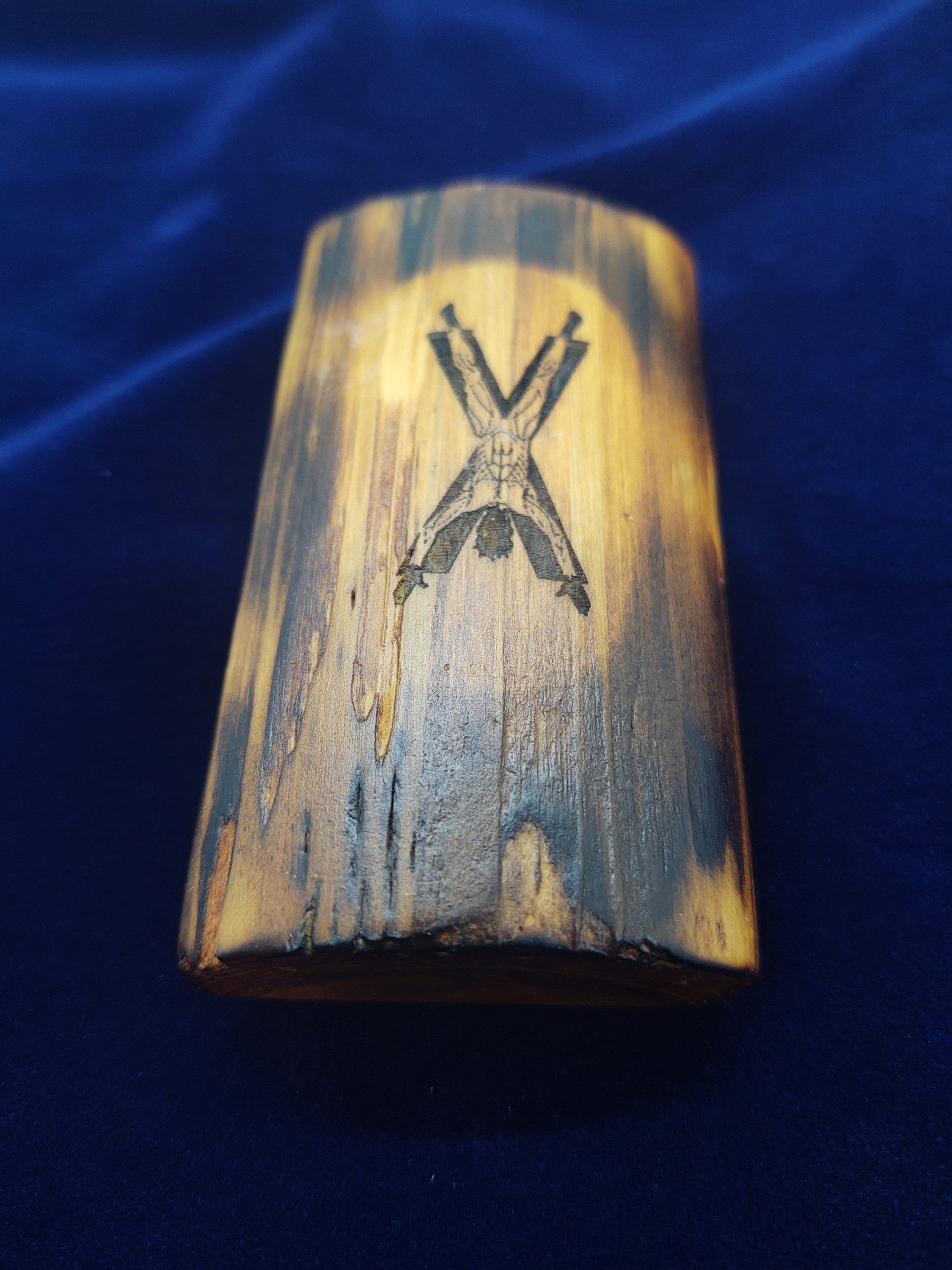 Miniature Wooden Shield with a Sigil Laser marked onto the face. This item is carved out of wood cut from a fallen evergreen tree branch. It measures 1-3/4 inches wide by 3-3/8 inches tall and approximately 3/4 inch thick. The back was carved out using a Dremel and the hand holds were fashioned from small nails hammered flat and shaped to fit. The wood has been burned slightly with a torch and then stained. See the other listings I have for similar items with Sigils.