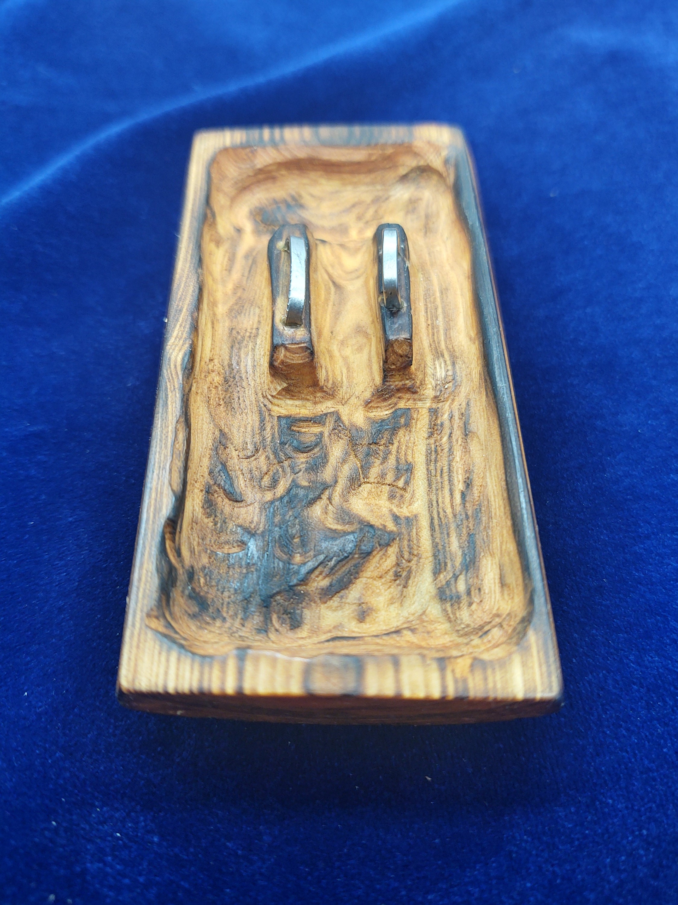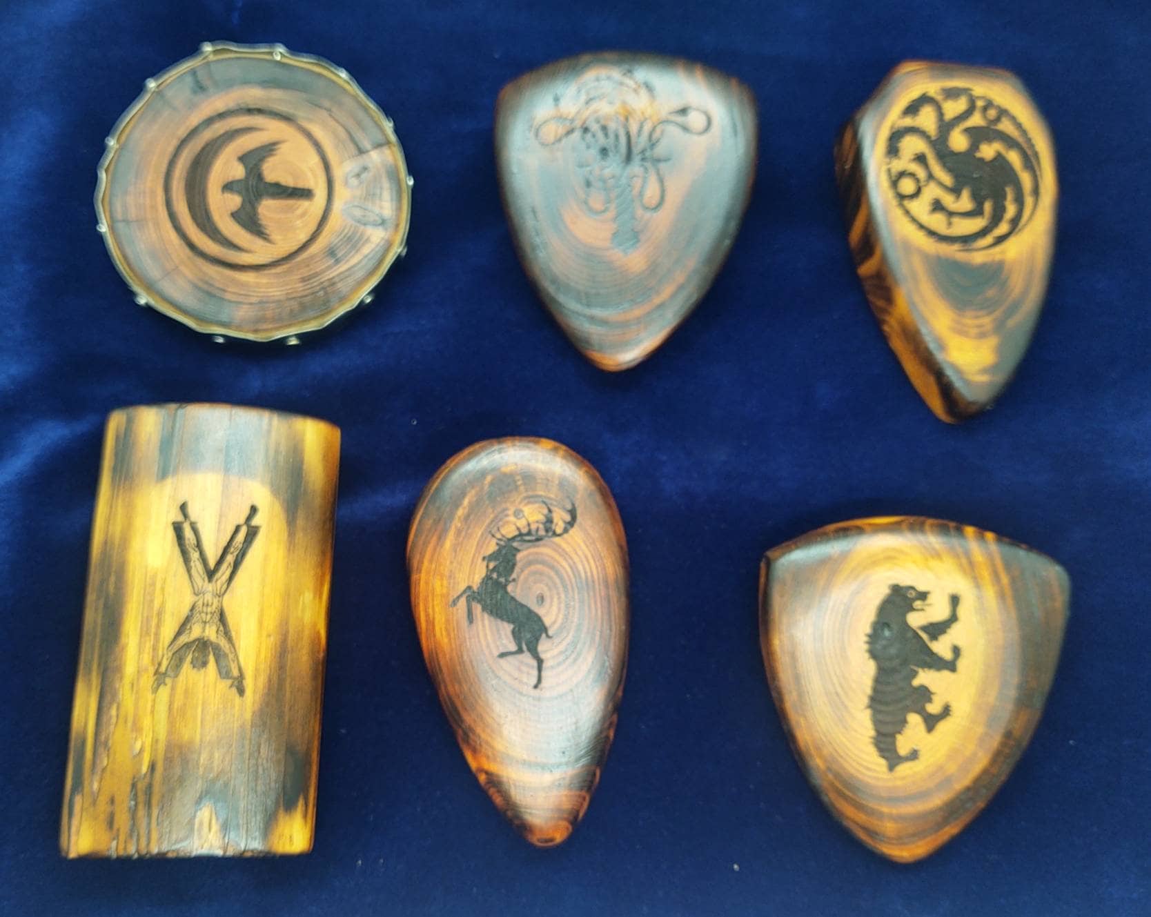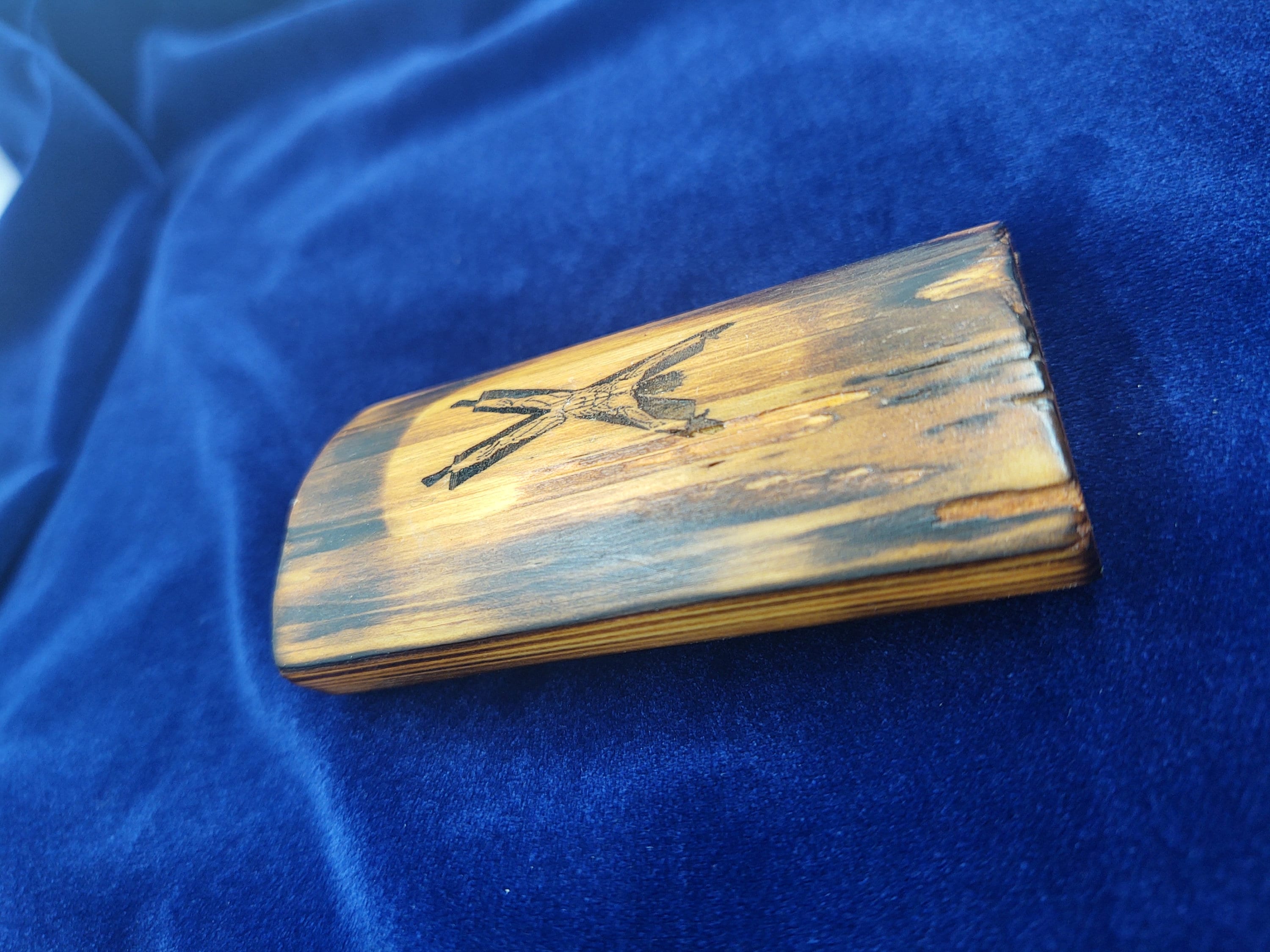 Miniature Wooden Shield with a Sigil Laser marked onto the face. This item is carved out of wood cut from a fallen evergreen tree branch. It measures 1-3/4 inches wide by 3-3/8 inches tall and approximately 3/4 inch thick. The back was carved out using a Dremel and the hand holds were fashioned from small nails hammered flat and shaped to fit. The wood has been burned slightly with a torch and then stained. See the other listings I have for similar items with Sigils.